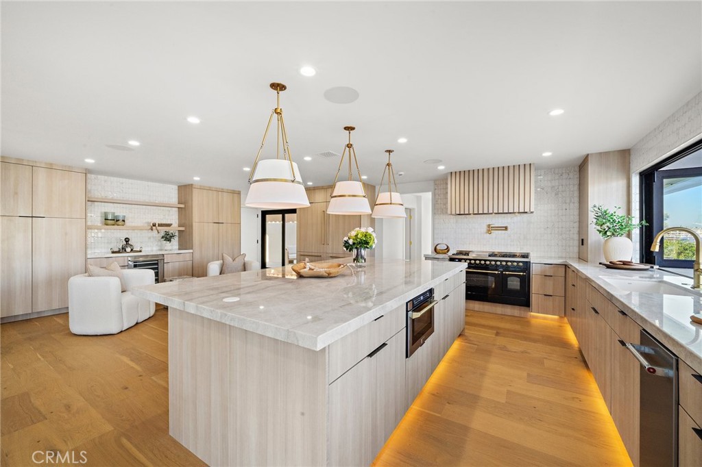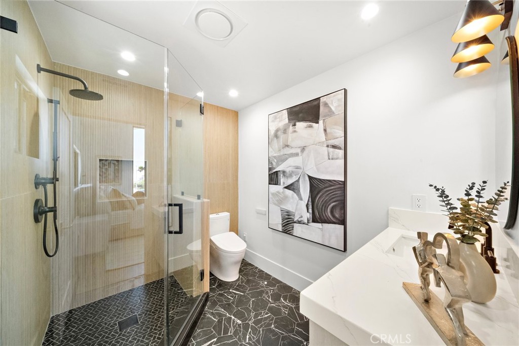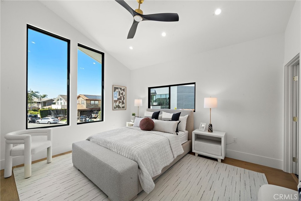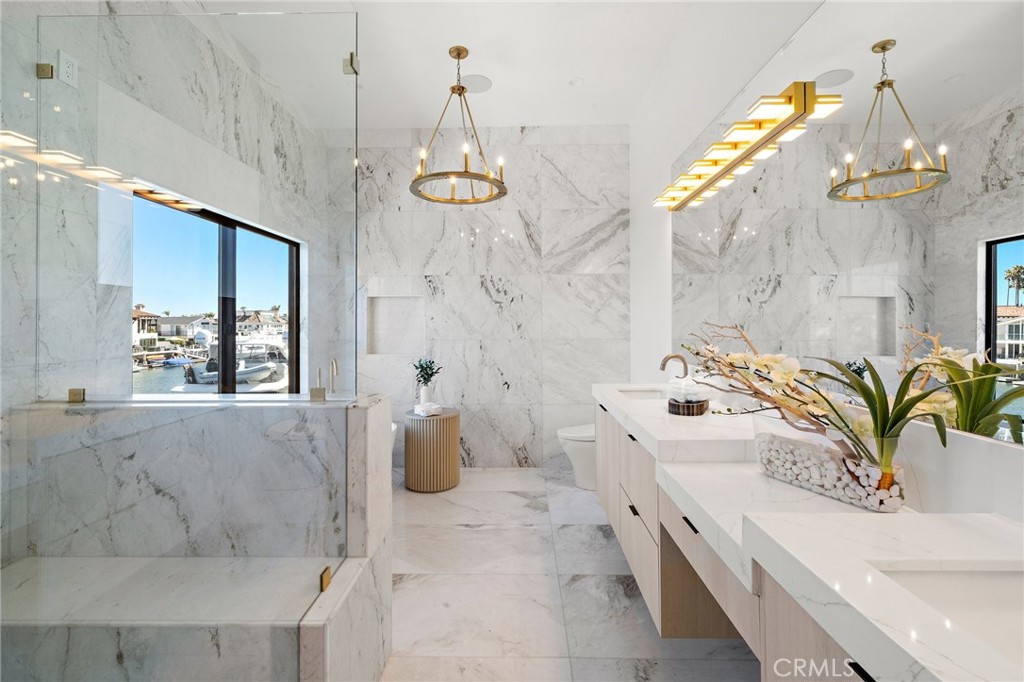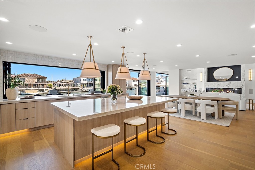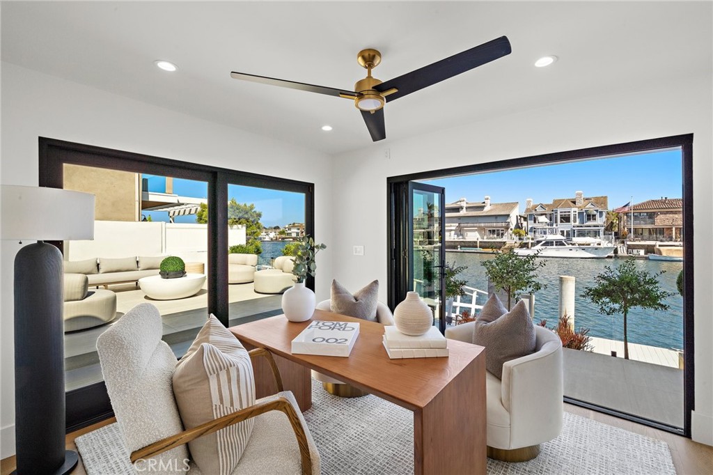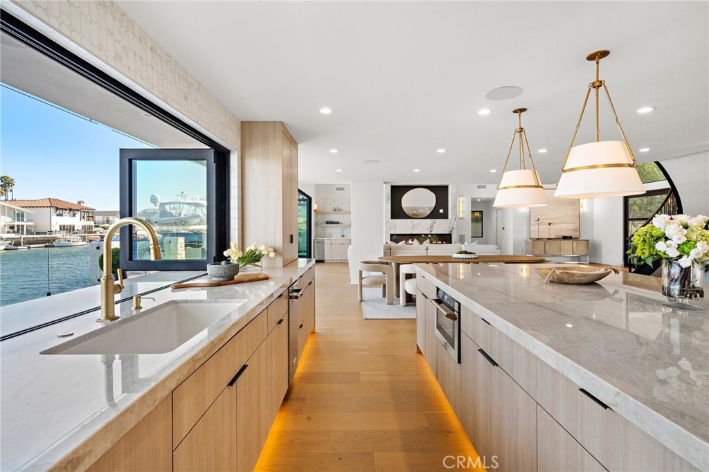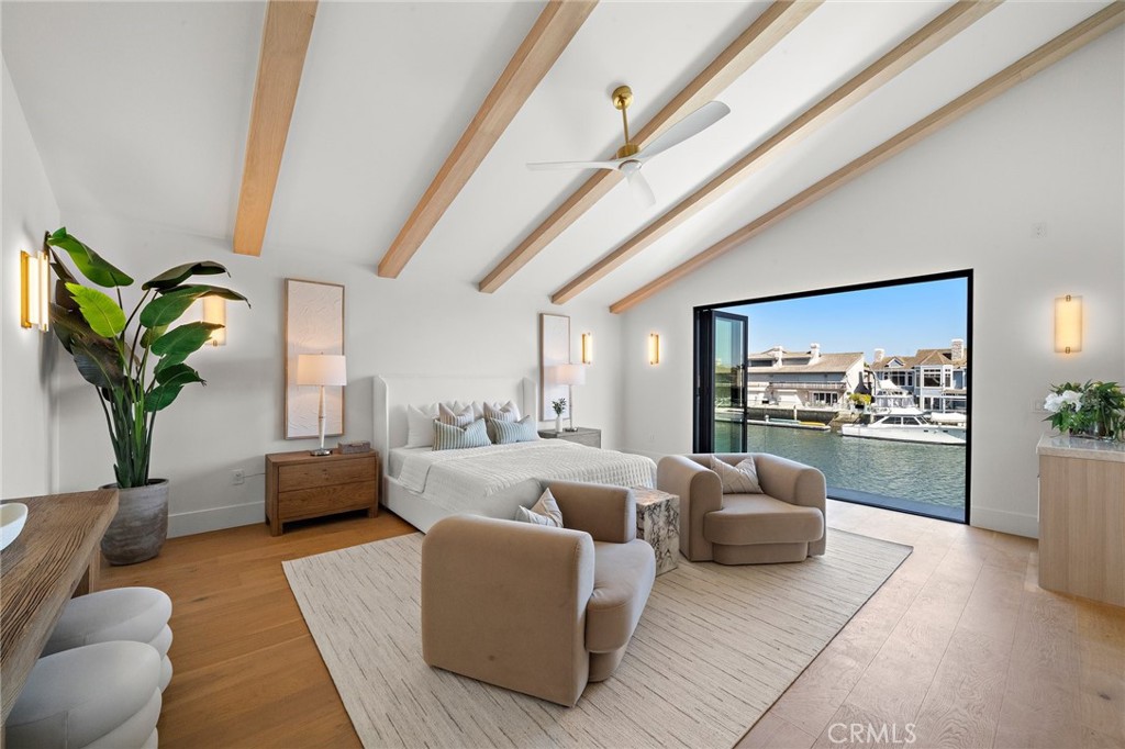 Exceptional custom-built waterfront residence with 110 feet of prime waterfrontage on the Midway Channel of Huntington Harbour. Located on prestigious Humboldt Island the property features stunning wide water views and a private 73-foot side tie boat dock. This crisp contemporary property was taken down to the studs and has been fully remodeled and renovated. Every aspect of the property has been thoughtfully and meticulously designed for the ultimate in California Coastal Waterfront living. As you enter though the tranquil courtyard you are greeted by the massive pivot door that leads you into the gracious living space. High volume beamed ceilings open up to your waterfront paradise. The grand fireplace graces the living room with elegance and style. Bonelli Italian folding doors encompass the entire back side of the property leading out to the abundant waterside deck. Rich white oak wood flooring flows seamlessly throughout the interior of the home. The kitchen is a dream come true! Sleek Taj Mahal quartzite counters and custom-built flat panel European cabinetry. Ilve Nostalgie II restaurant grade stove is sure to please the chef in the house. Gorgeous marble backsplash and an expansive center island for all your gatherings. Bonelli bi folding windows open up over the kitchen sink and out to the bar area on the exterior of the home. There is a very spacious downstairs bedroom with adjacent bath that could easily be a second primary suite. Downstairs office has a point location water view of the Harbour and can also serve as an entertainment hub for the patio area. As you ascend the grand staircase you are led to the fabulous primary suite. A true sanctuary with high volume beamed ceilings and a private balcony. Built in beverage station and an inviting fireplace flatter the balance of the space. The primary bath is a showstopper with lux white floor to ceiling marble. Vast shower with multi-function shower heads and a sumptuous soaking tub with views out to the Harbour. Custom flat panel European floating cabinetry and a vanity area that spans the entire length of the room. Two additional upstairs bedroom's both with high volume ceilings and architectural window placement. The deck on the rear grounds of the property wraps around the entire 110 feet of the lot. Endless opportunities for relaxing and entertaining are found here with views of the sparkling waters of Huntington Harbour. Come enjoy the Harbour lifestyle and all of life's true luxuries!